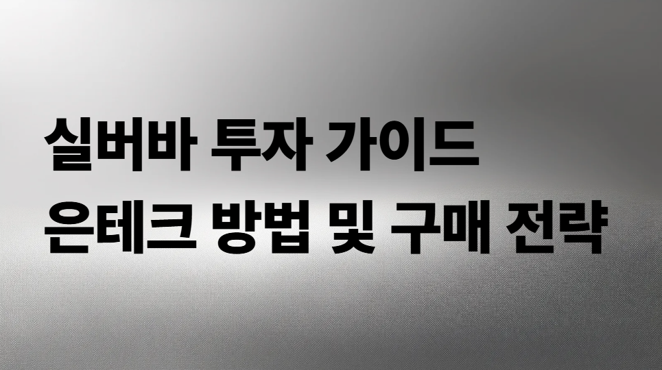 은테크에 대해 모르고 투자하면 후회할 수도 있습니다. 지금 바로 실버바 투자 전략, 핵심 포인트를 한눈에 확인해보세요!